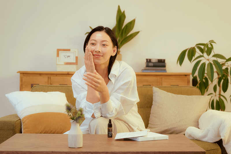 お化粧水の後、クリームの前に塗布してください。オイルは、肌が水分を含みうるおっている状態でよく浸透します。お化粧水でたっぷりうるおいを与えた後に、肌になじませましょう。お化粧水が完全になじみきる前、肌表面が少し濡れているタイミングがベストです!