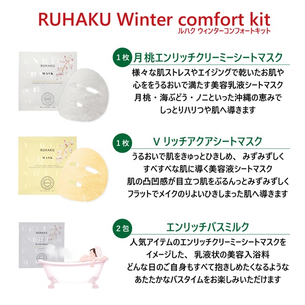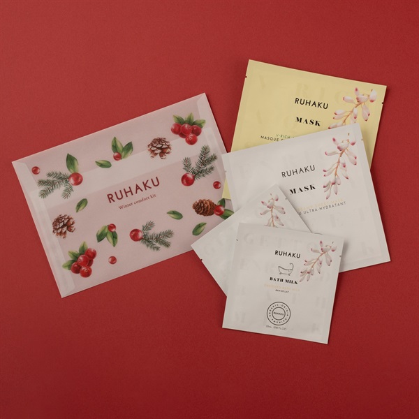 新製品のバスミルク(2包)と、シートマスク(2種2枚)が15%OFFになった数量限定のセット! 年末で忙しいときにもセルフケアが癒しとなり、自分を調える時間になるような想いが詰まったギフトです。プチギフトにぴったりな封筒型のコンパクトな包みでお届けします。